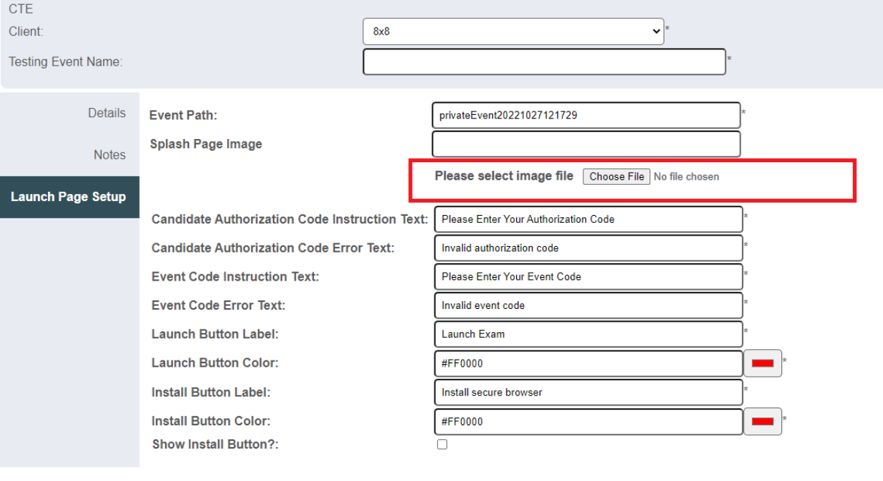 To add a background image to your Private Event, simply log in with your administrator account. Navigate to Testing Network>Private Events>Launch Page Setup. Select the image file upload option and choose file.